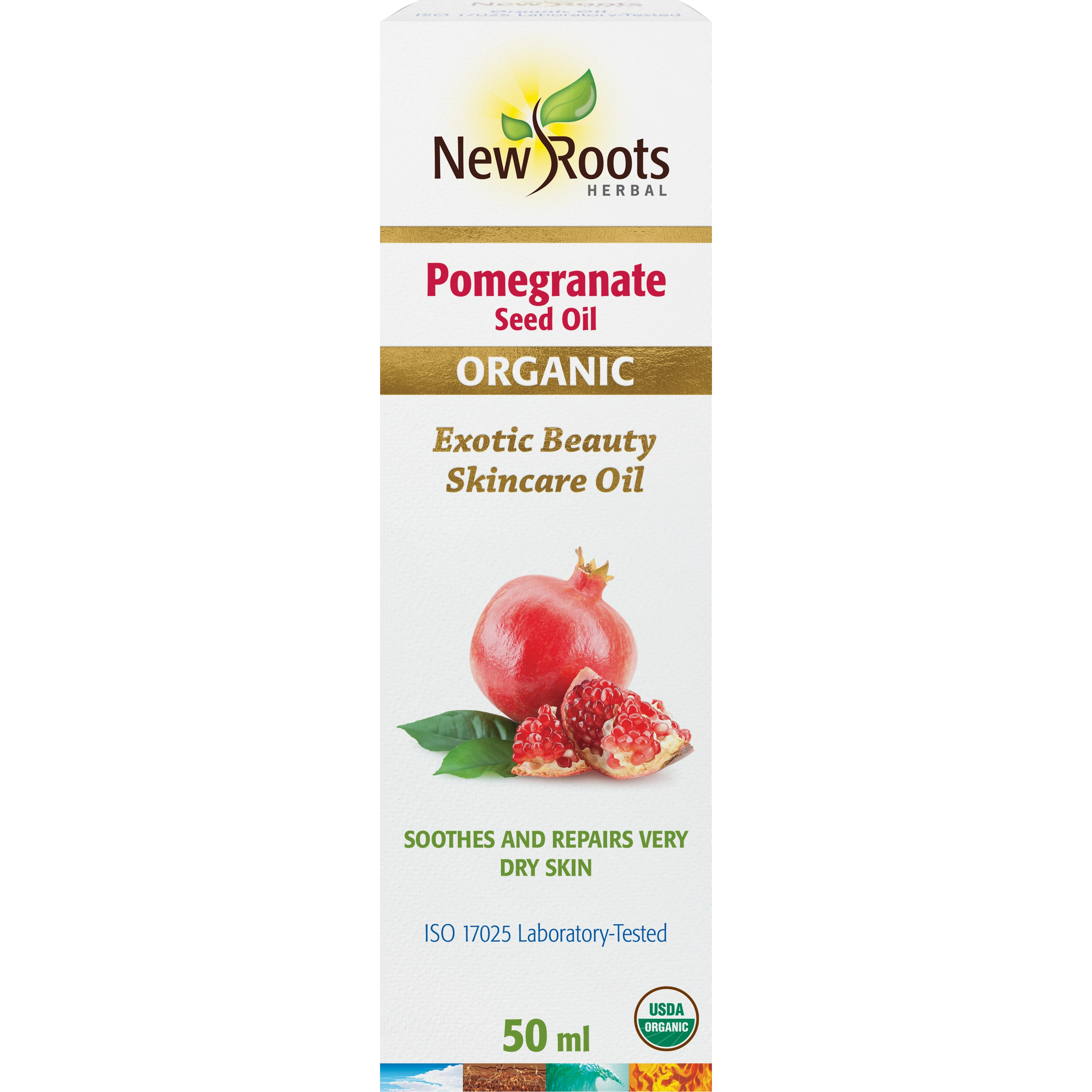 New Roots Herbal’s organic, cold-pressed Pomegranate Seed Oil is rich in omega‑5 (punicic acid) and antioxidants that support supple, radiant skin. It helps reinforce the skin’s moisture barrier, leaving skin soft and visibly smoother. This nutrient-dense oil is ideal for night care and a rescue treatment for very dry or mature skin.