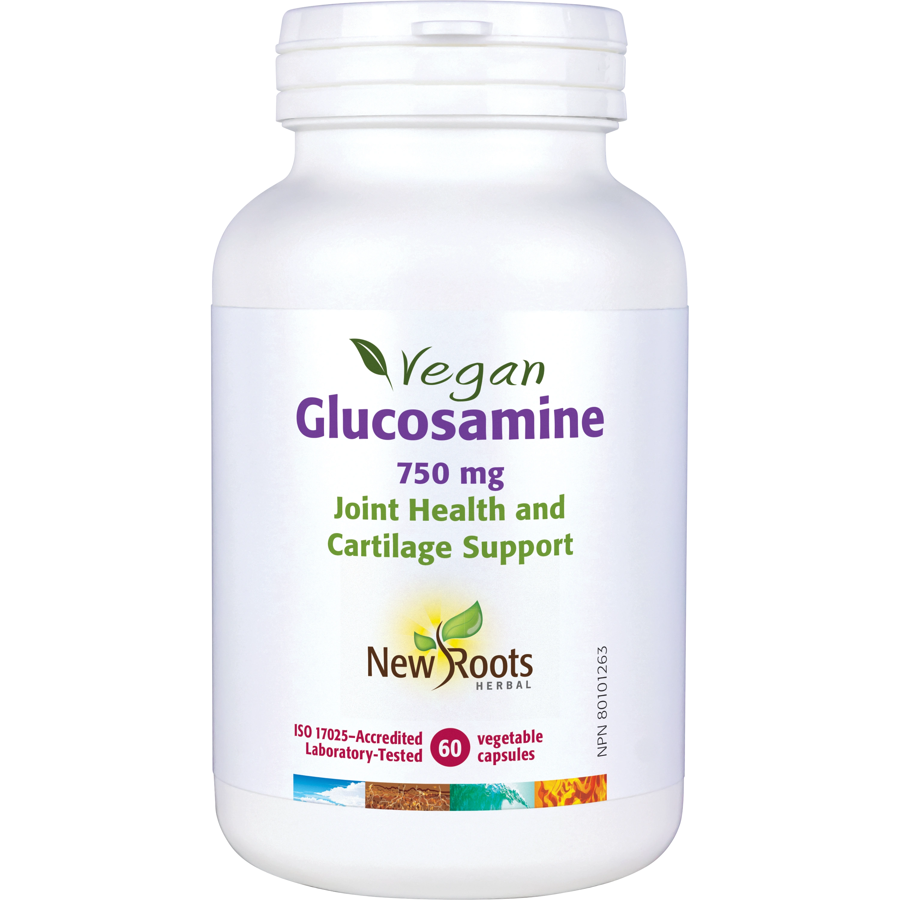 New Roots Herbal’s Vegan Glucosamine delivers 750 mg per vegan-compliant capsule for twice-daily dosage.